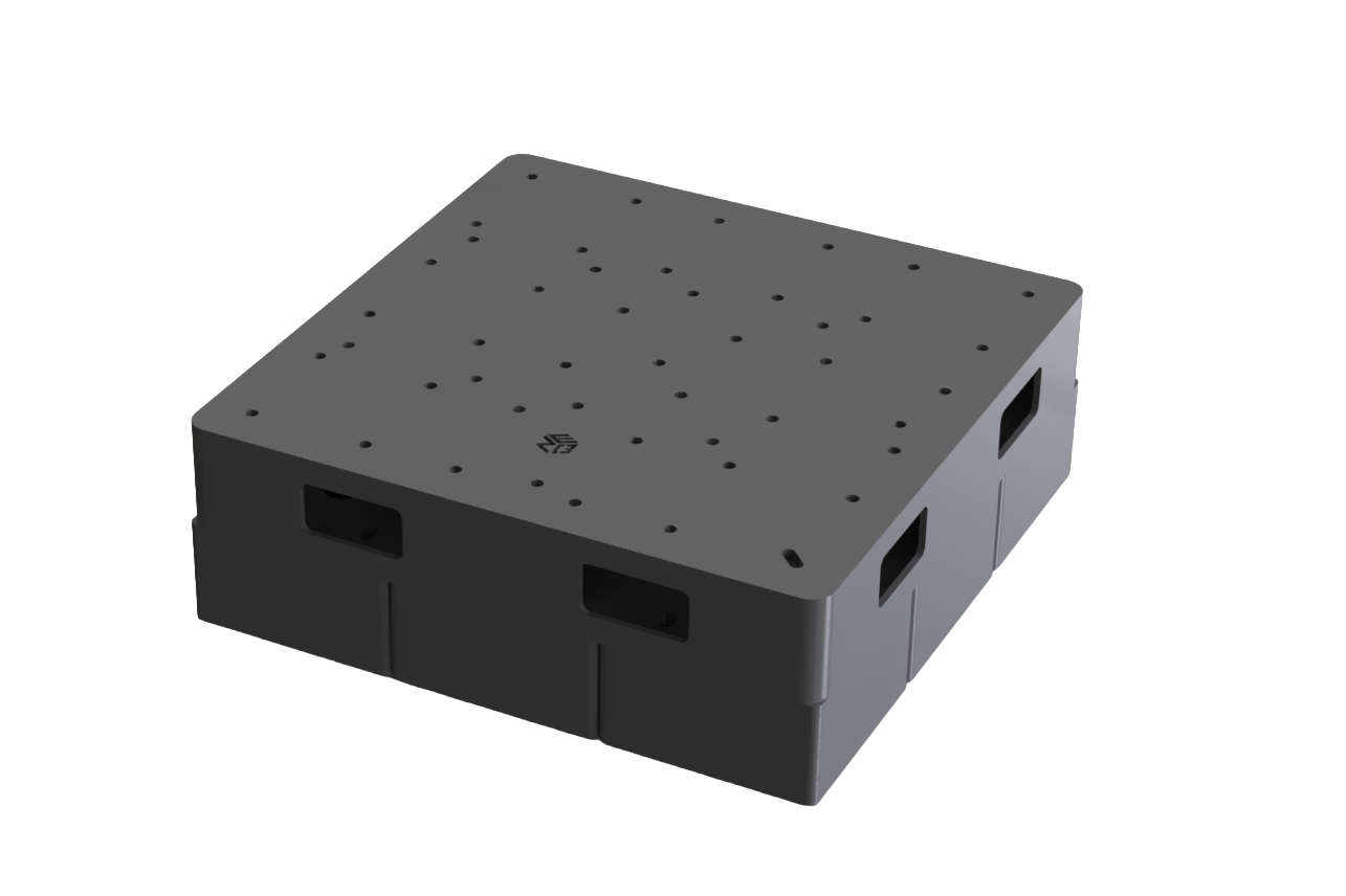 9-Point Precision Leveling: Integrated ports accommodate (8) heavy-duty Screwjacks around the perimeter. This allows for ultra-precise leveling across the massive surface area, ensuring the entire 9-unit assembly sits flush on uneven terrain to maintain a perfectly plumb vertical load.