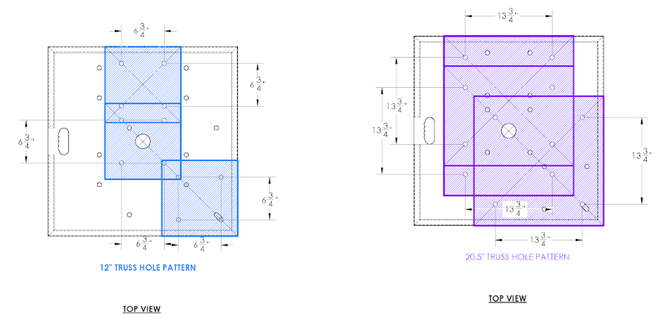 Extreme Versatility: The multi-hole pattern allows you to mount both 12" and 20.5" truss in center, edge, or corner positions, giving you the flexibility to create everything from standard totems to flush-to-wall displays.